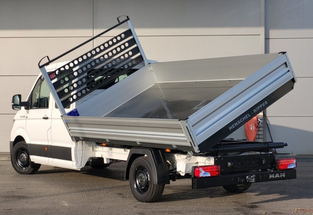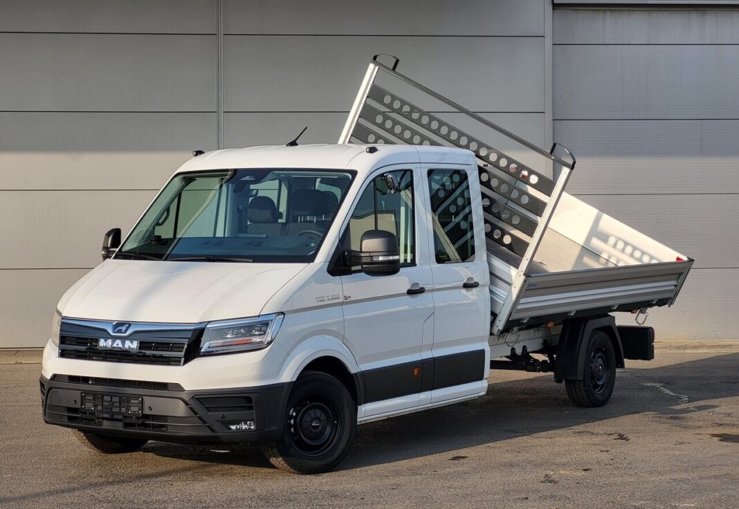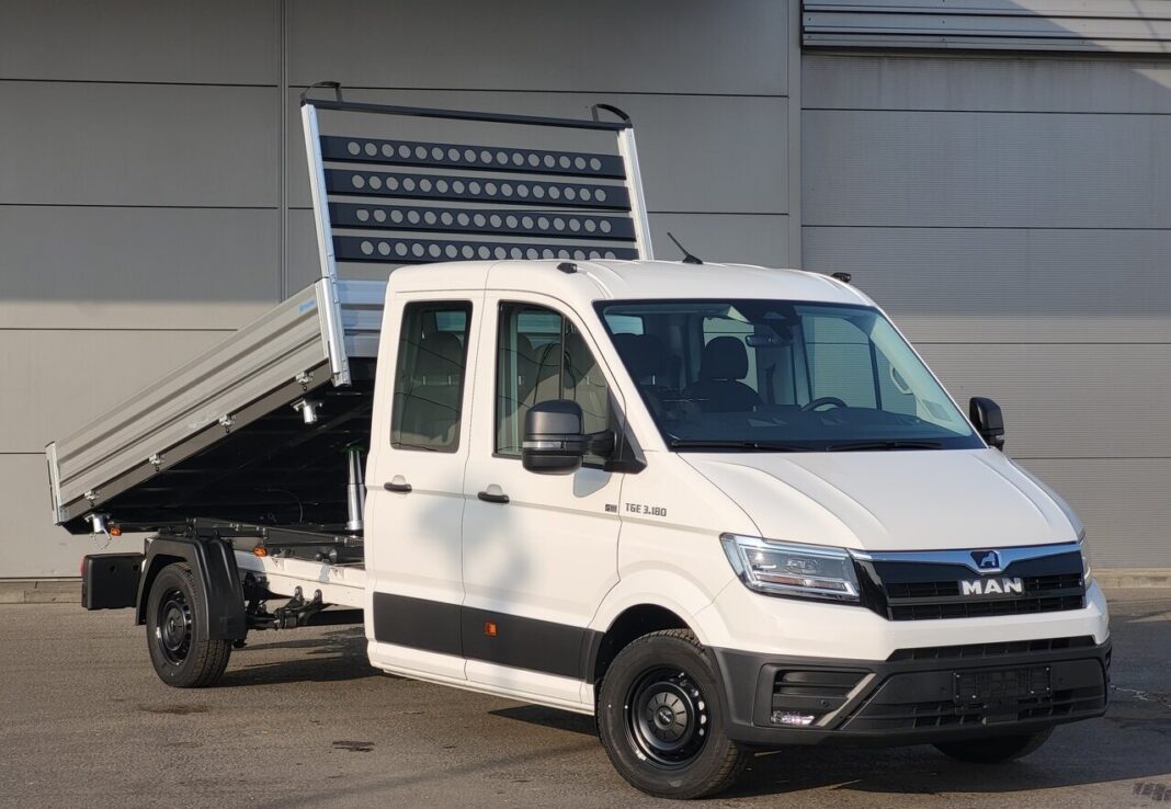 This brand-new MAN Bauma 3T180 Tipper combines power, efficiency and safety in a modern design. With its spacious double cab, strong aluminium 3-way tipper body and advanced driver assistance systems,