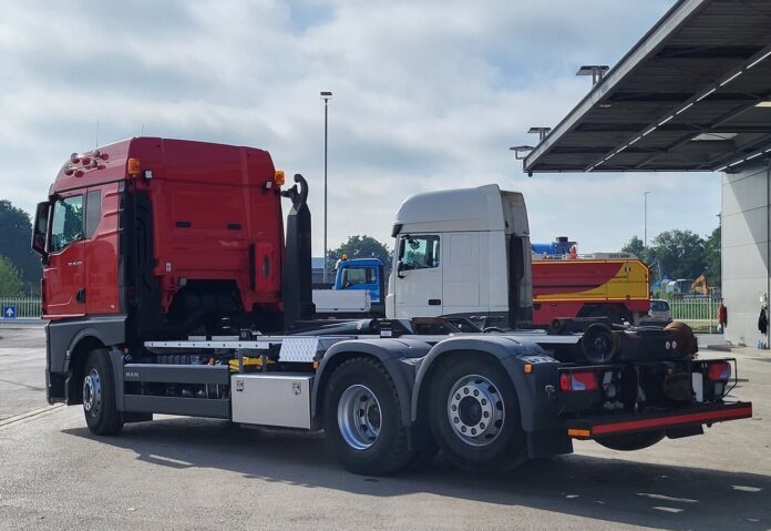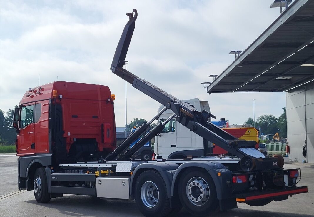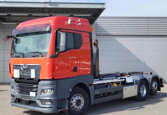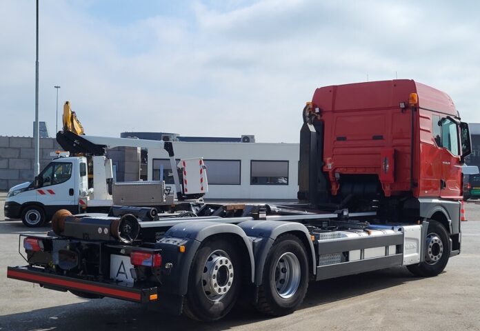 The MAN TGX 26-WMA1 hooklift truck with VDL system is a powerful and efficient vehicle, ideal for heavy-duty transport.